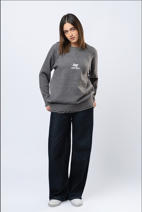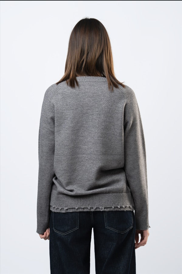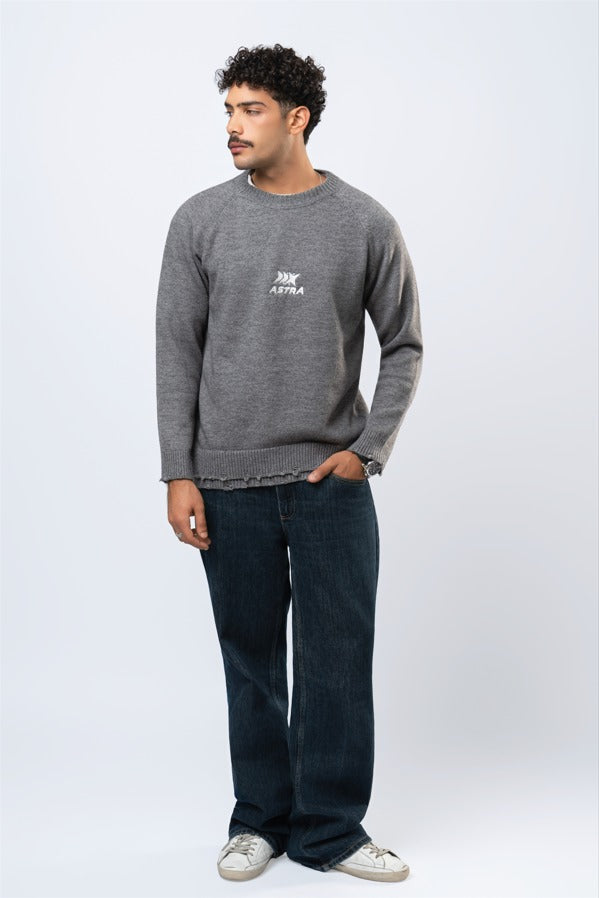 Double layered knitted sweater in grey